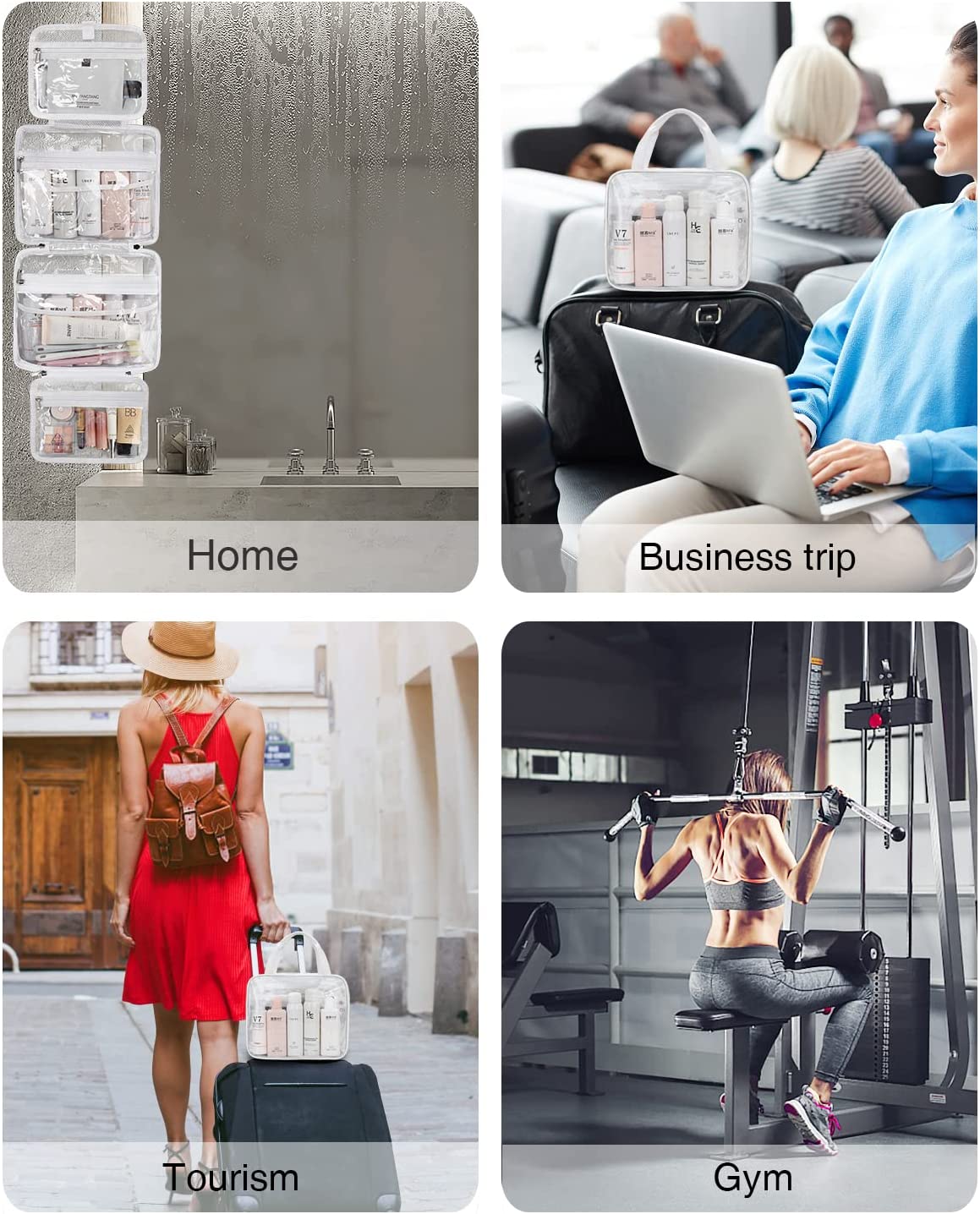 - PREMIUM QUALITY MATERIAL: The Hanging Toiletry Bag is made of high quality transparent PVC material, eco-friendly, easy to clean, durable that will not tear easily and a long lifetime, it is reusable.The Hanging Toiletry Bag has Waterproof Zipper, strong zipper closure ensures your toiletries stay secure inside, no worry to carry small plastic liquid containers. The whole toiletry bag is made of waterproof material, durable and easy to clean.(Small Bottles are NOT included )