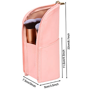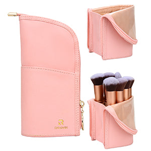 • PORTABLE MAKEUP BRUSH HOLDER BAG: Holds assorted sized brush easily. It stands on its own for easy access to the brushes. You just fold down the top and grab the brush you need.