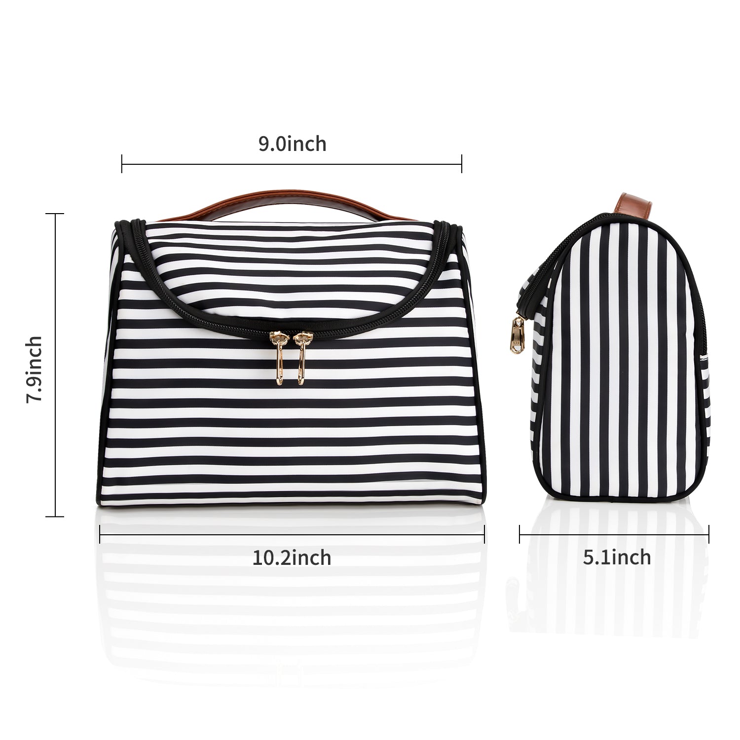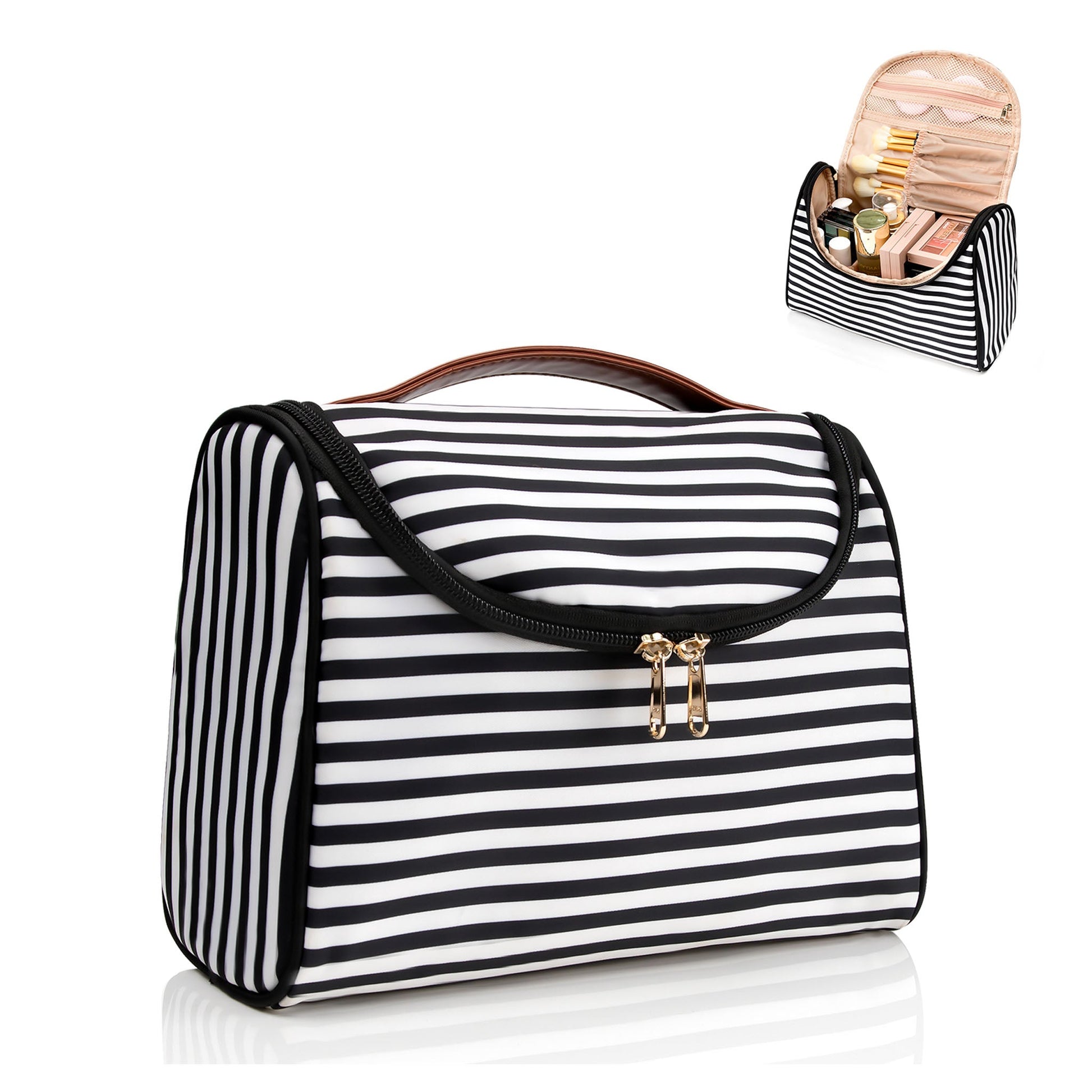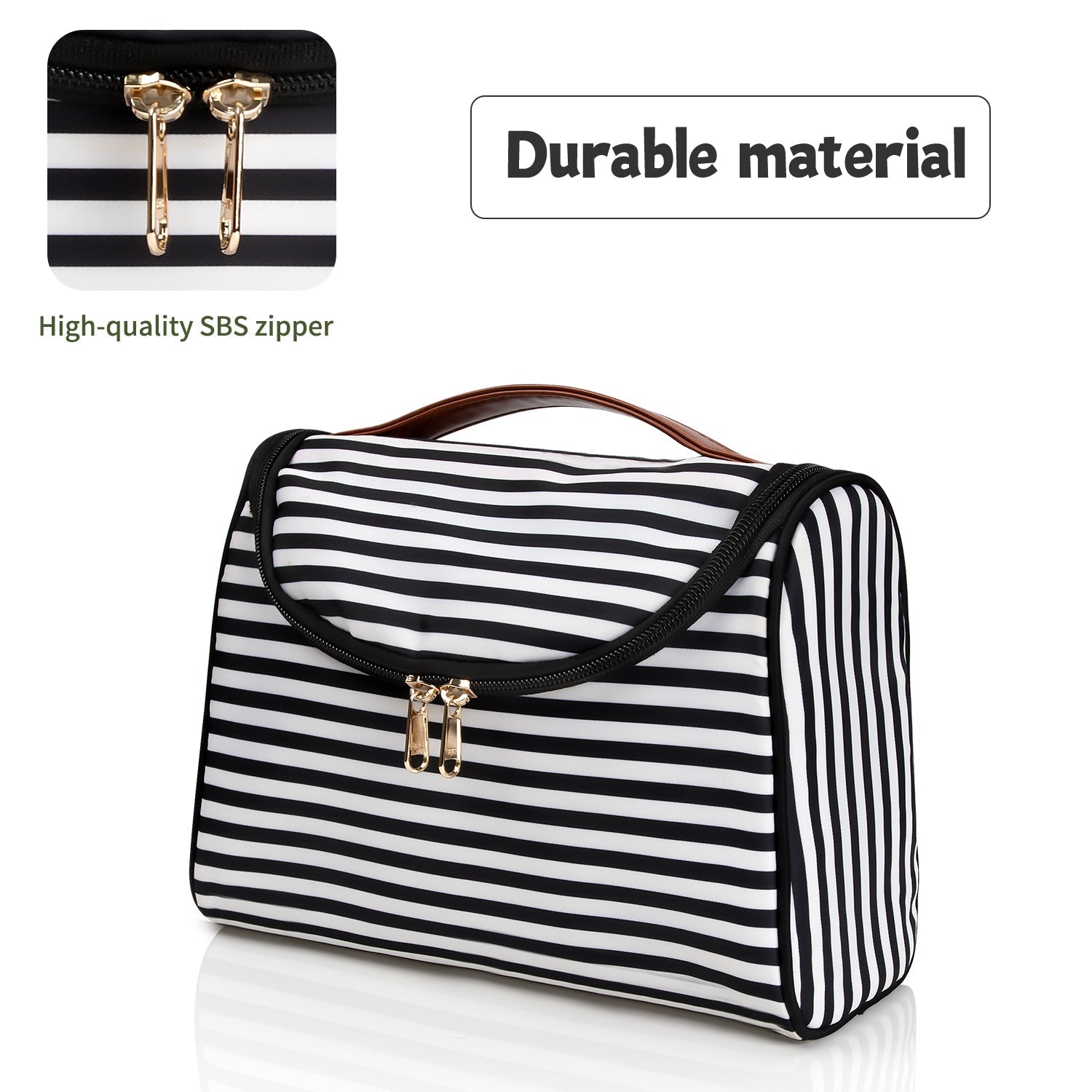 Travel Makeup Bag, Ethereal Cosmetic Bag for Women Portable Makeup Organizer Bag Upgrade Nylon Toiletry Bag Women Waterproof (Black Stripe)