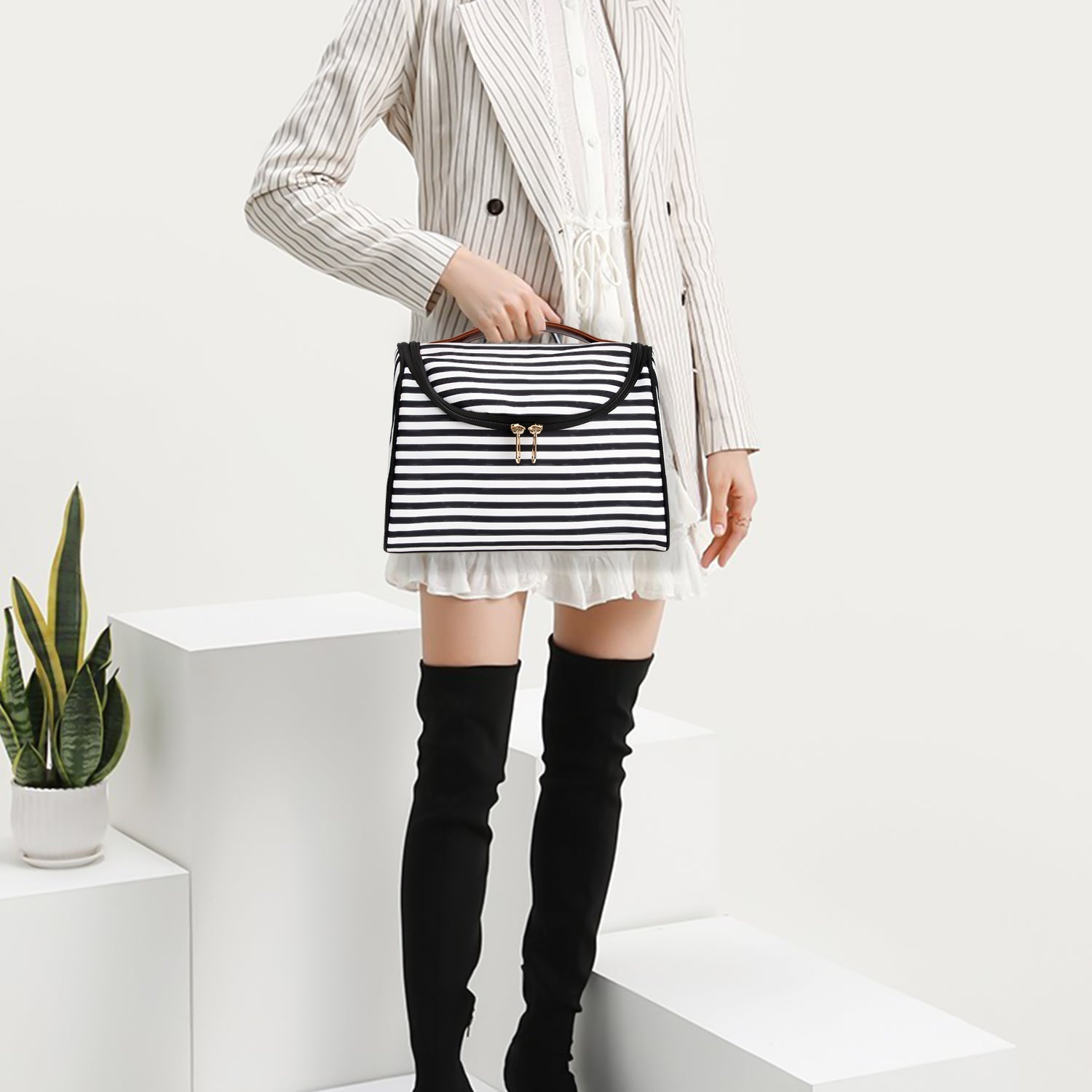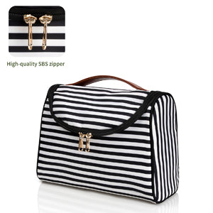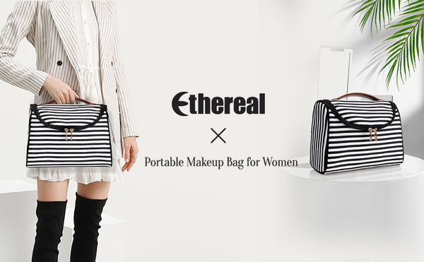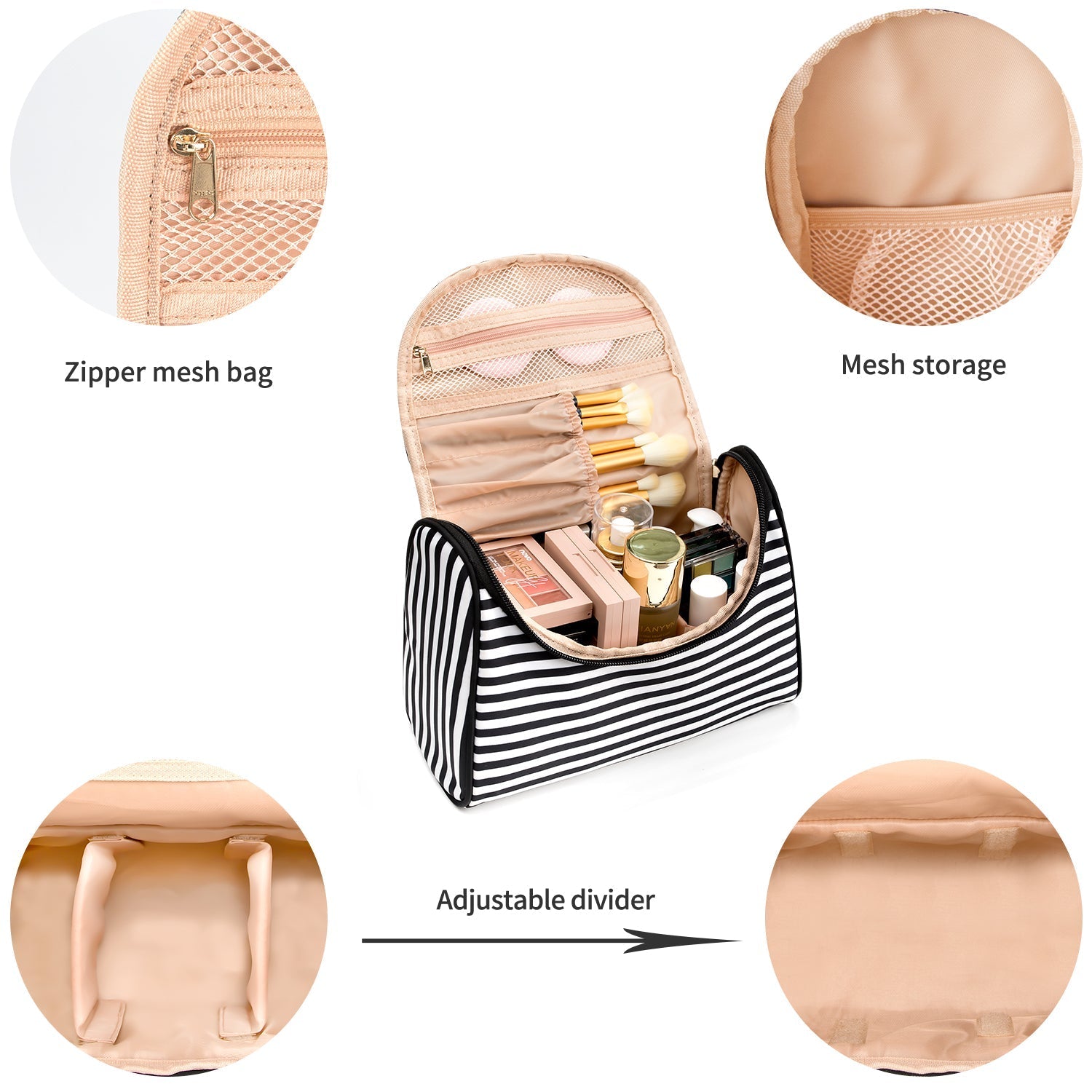 Travel Makeup Bag, Ethereal Cosmetic Bag for Women Portable Makeup Organizer Bag Upgrade Nylon Toiletry Bag Women Waterproof (Black Stripe)