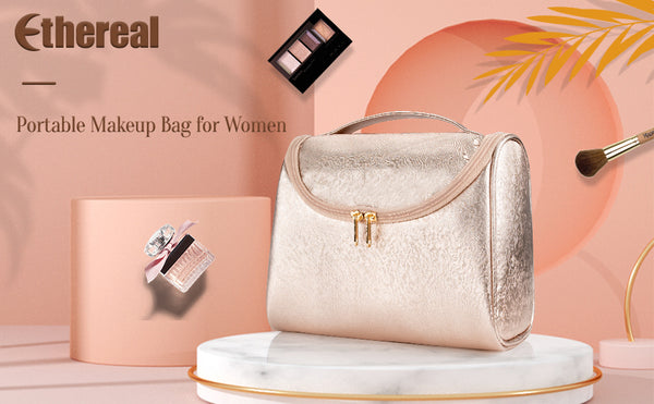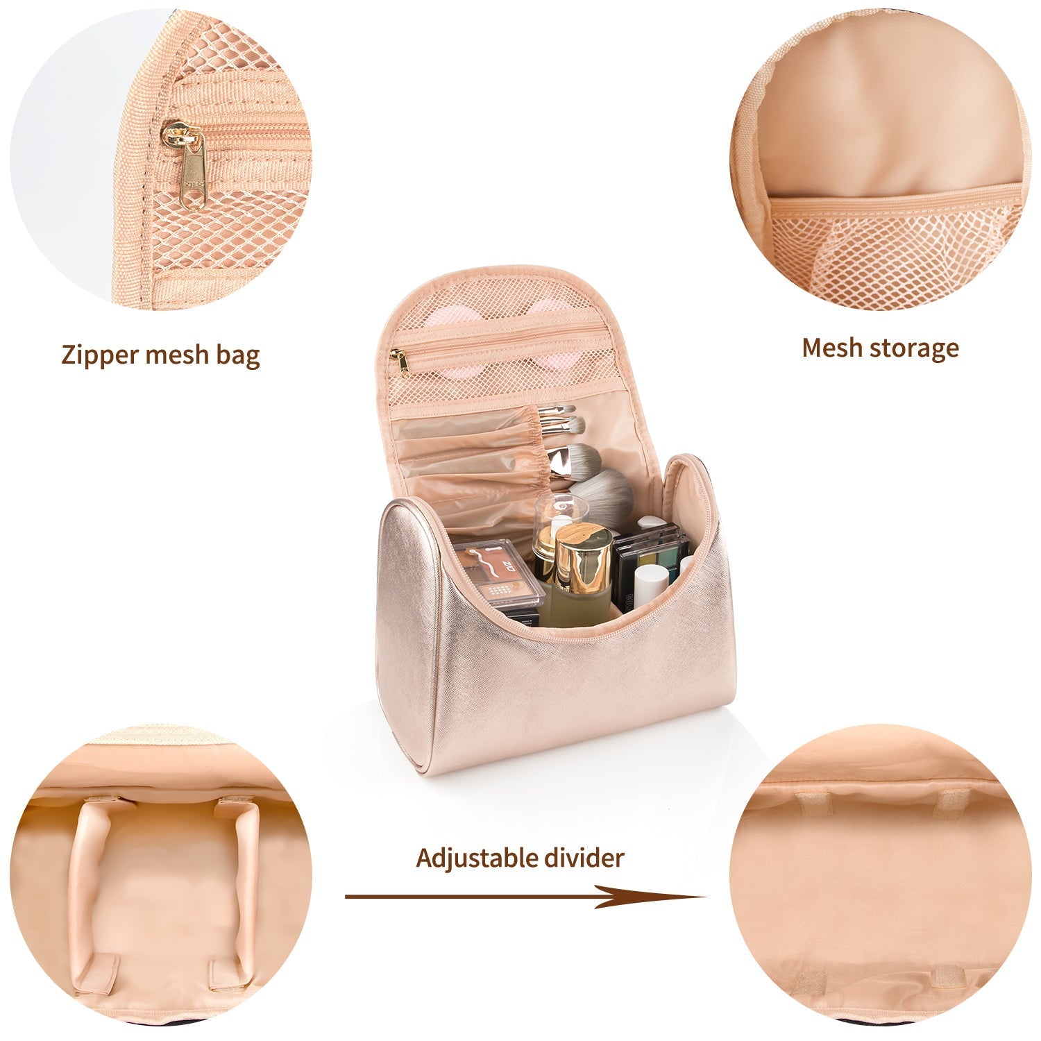 Travel Makeup Bag, Ethereal Cosmetic Bag for Women Portable Makeup Organizer Bag PU Leather Toiletry Bag Waterproof ( Rose Gold )