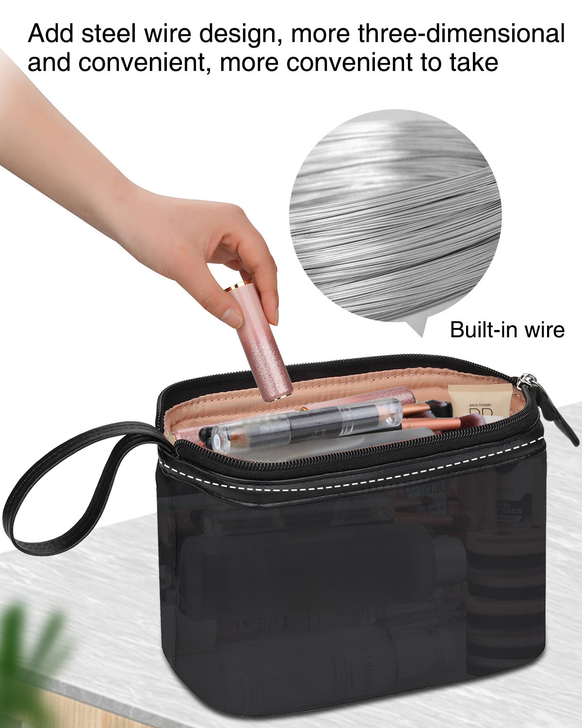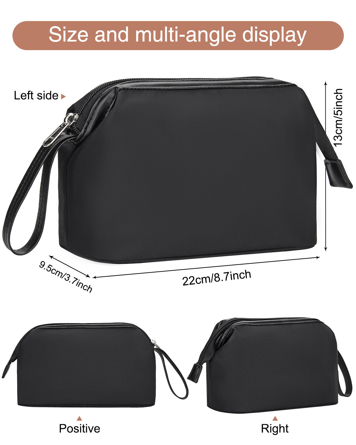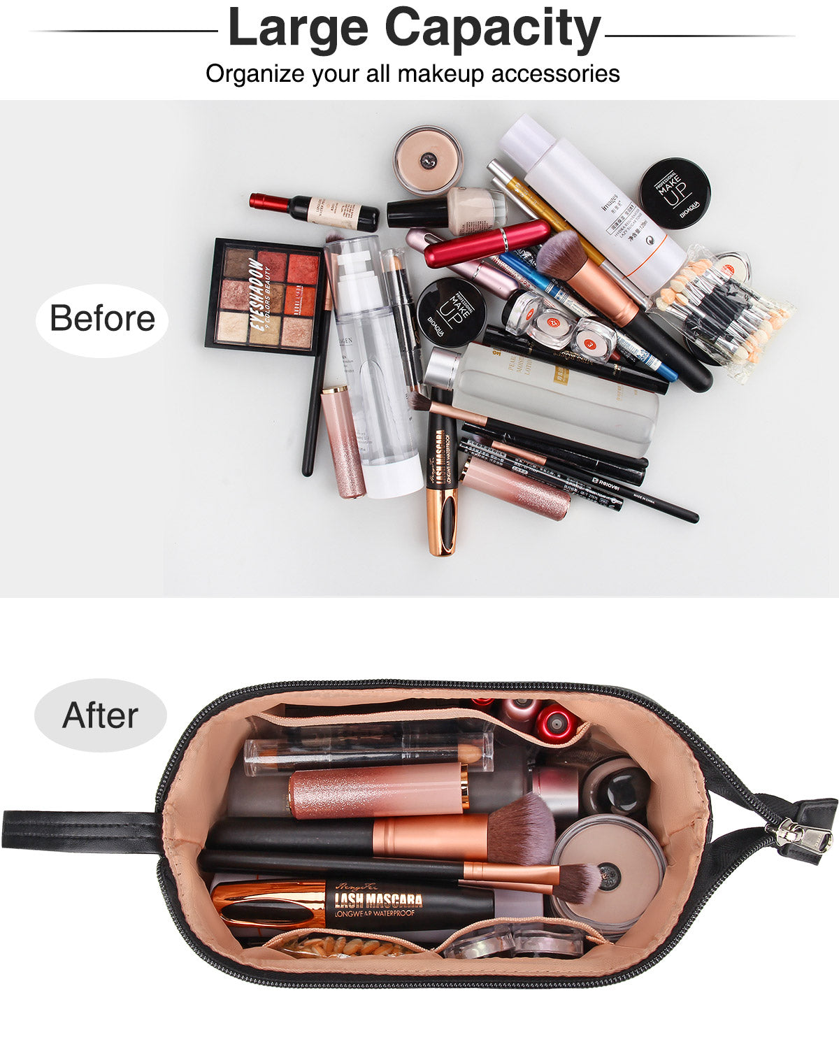 • Large-capacity design -- At the opening of the make up bag has a steel wire inserted inside, which can make the bag more three-dimensional and more comfortable to fetch,it's a good travel bags for women