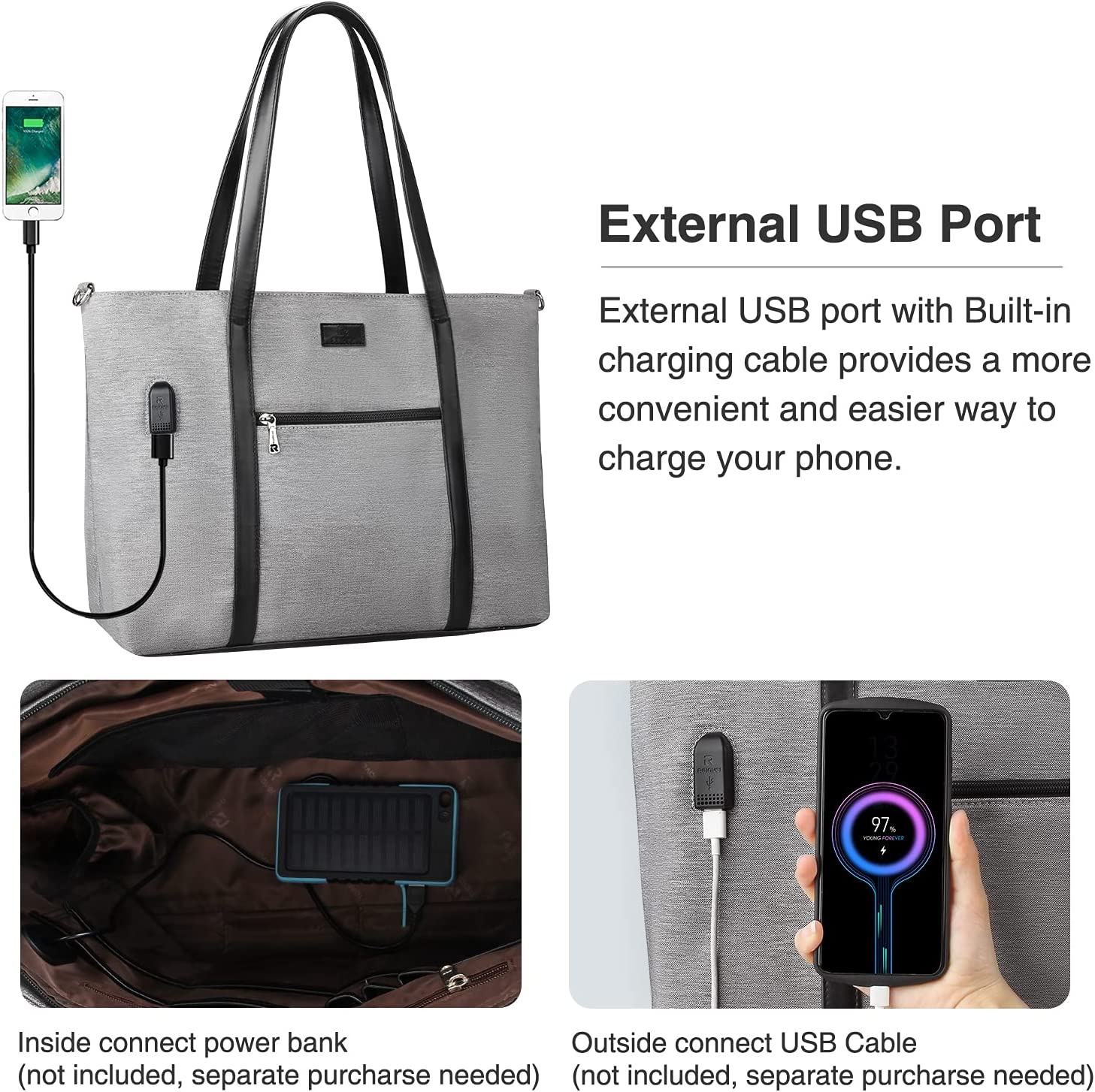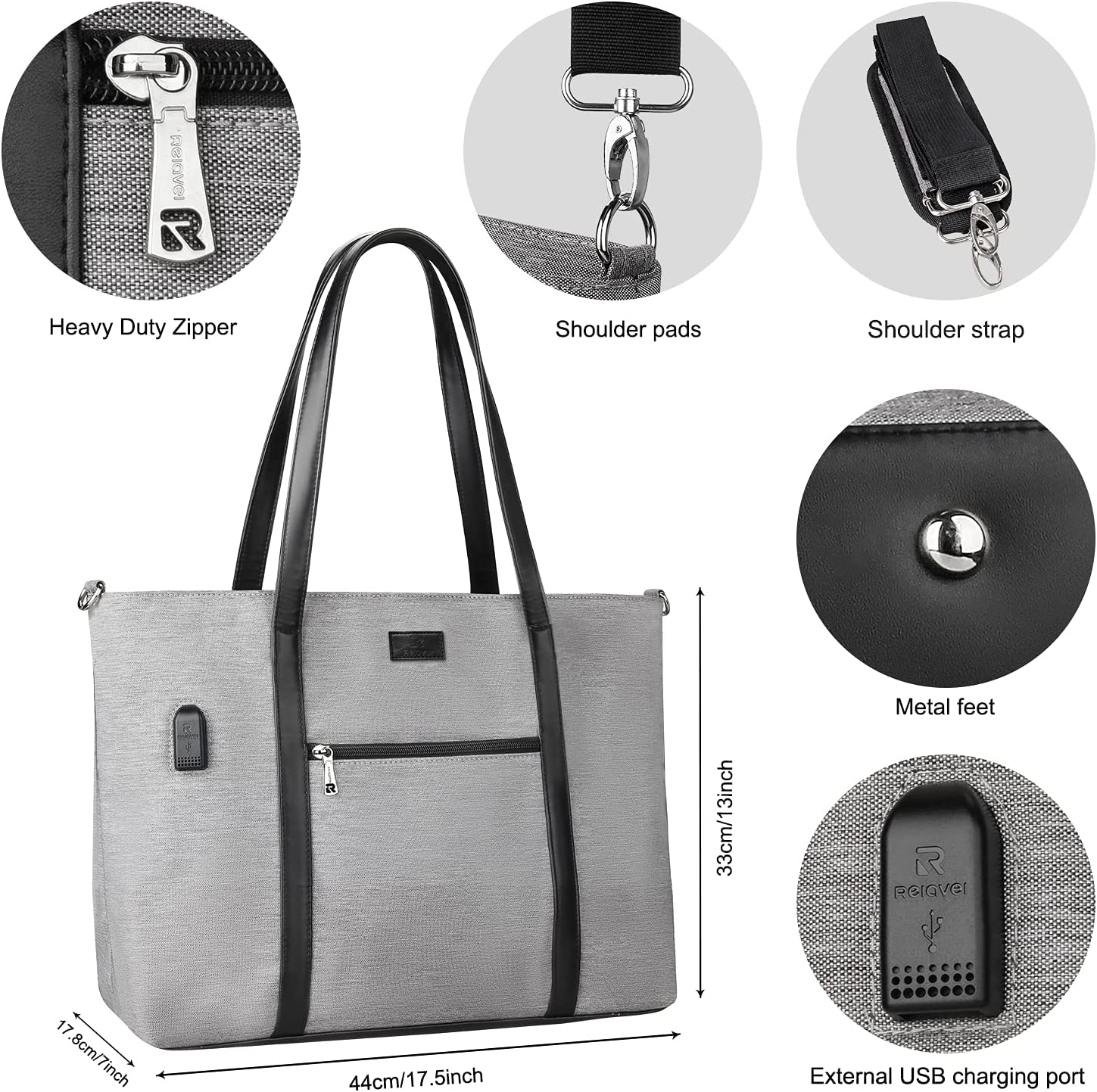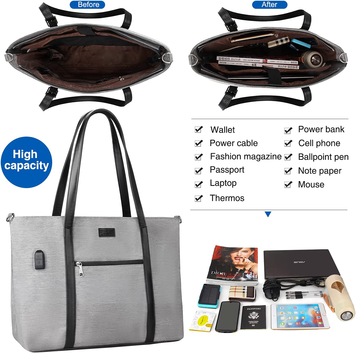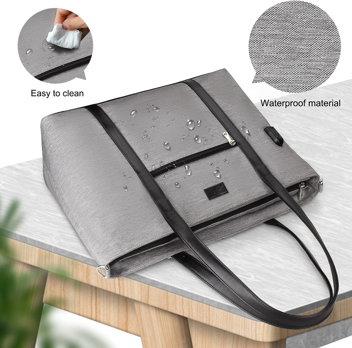 Laptop Tote Bag, Large Women Work Bag 17.3 Inch Laptop Bag with USB Charging Port Computer Bags Purse Lightweight Waterproof Teacher Bag (17.3 inch, Gray)