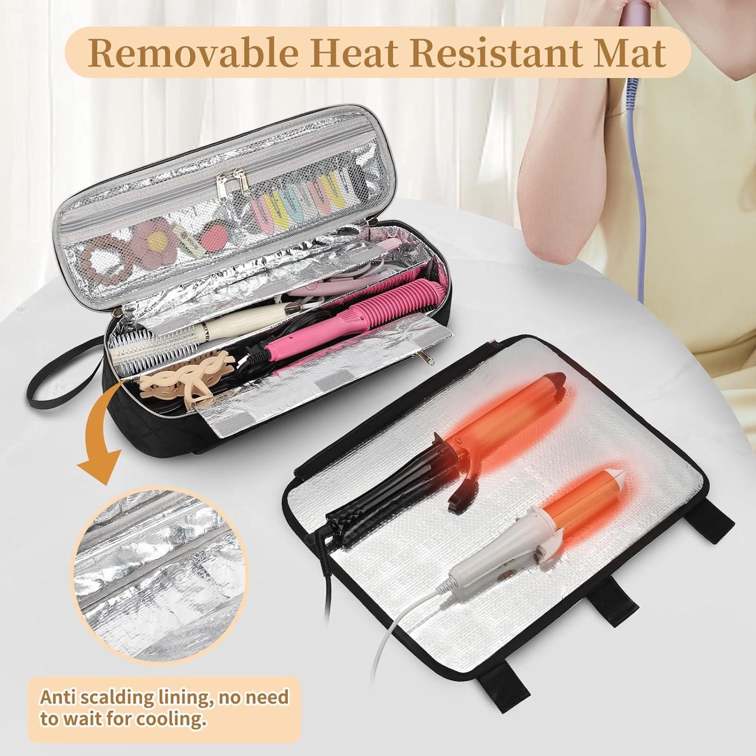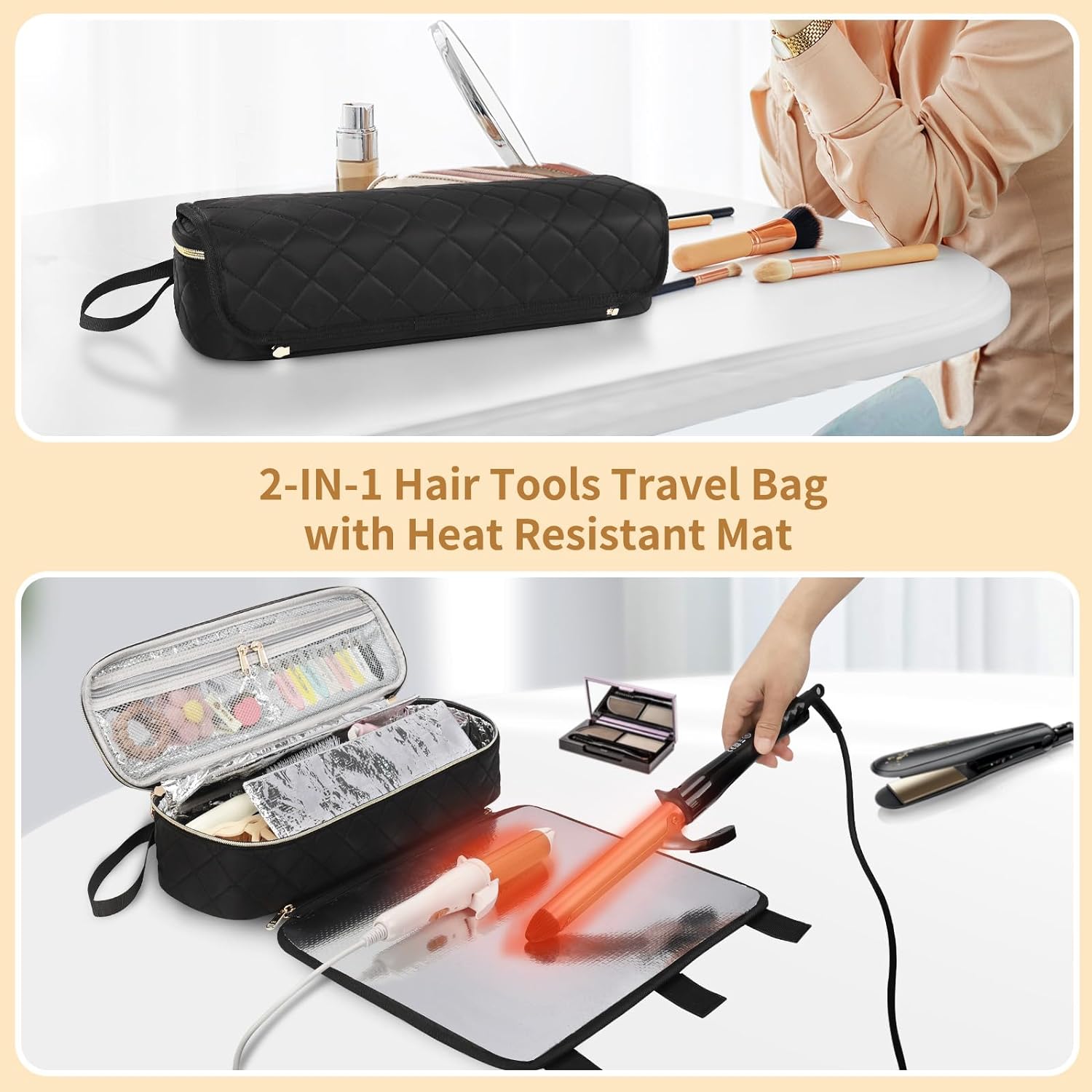 Hair Tools Travel Bag with Removable Heat Resistant Mat, 2-in-1 Design Portable Hair Styling Tool Organizer Storage for Flat Irons, Straighteners, Curling Iron, and Haircare Accessories