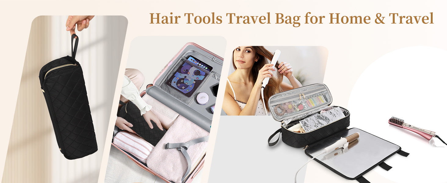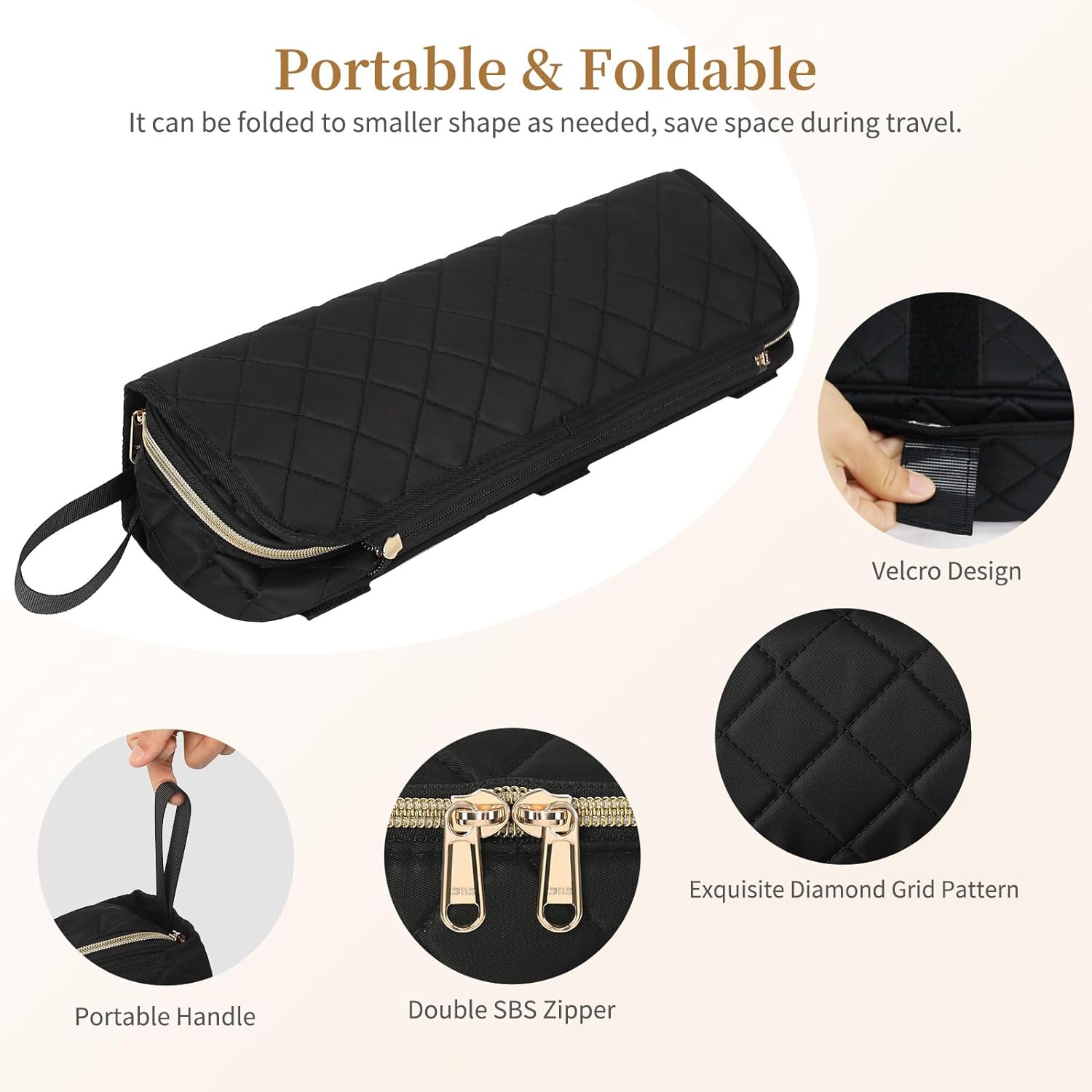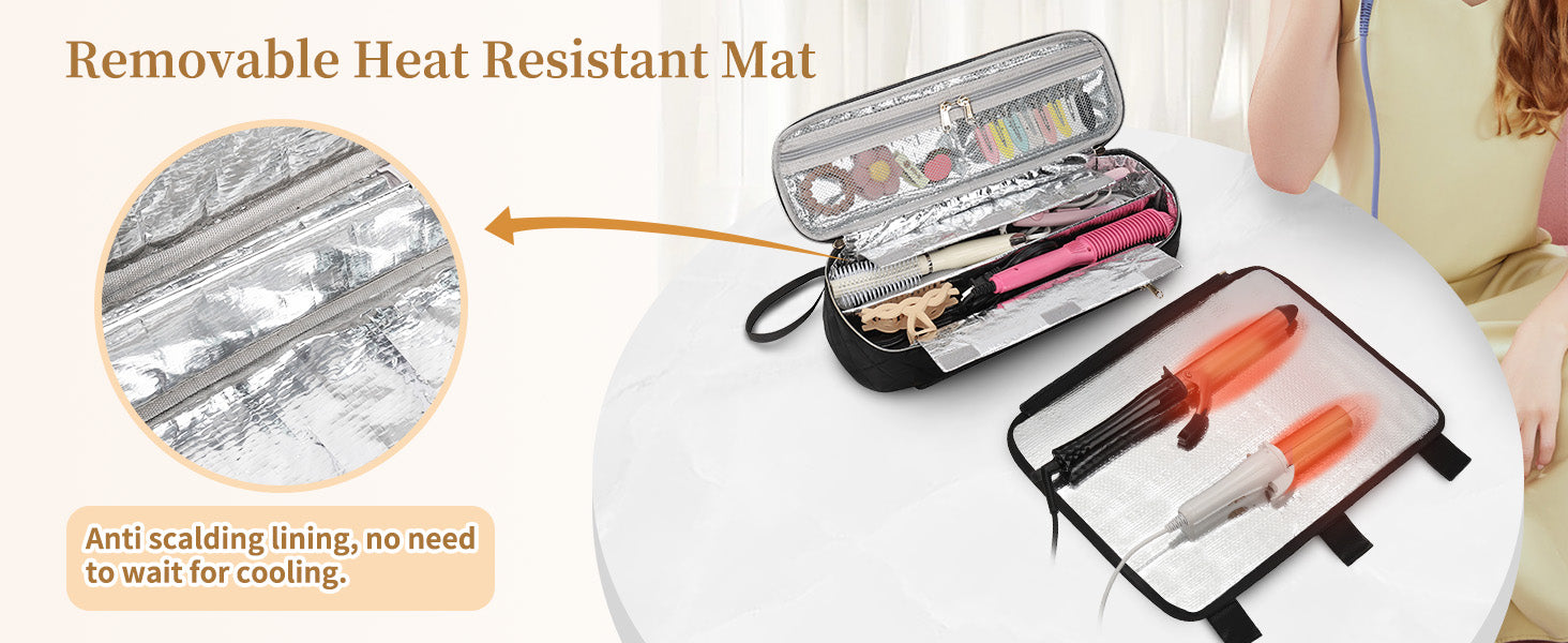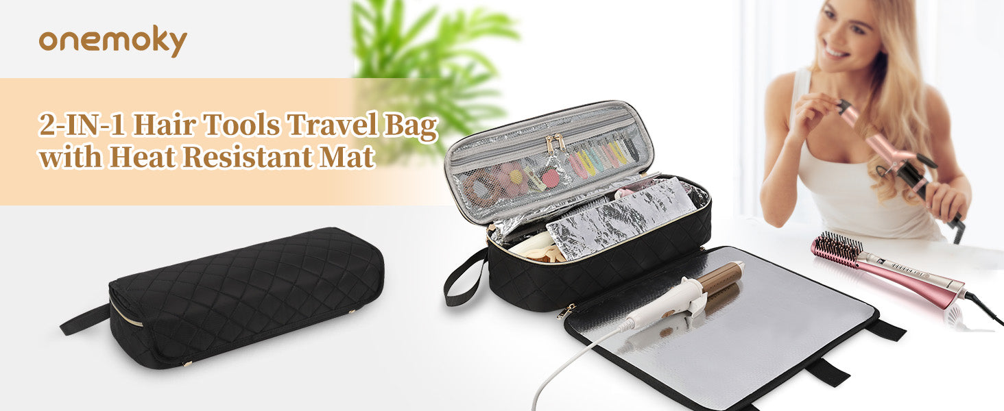 - 〖2-in-1 Hair Tools Travel Bag〗——Unique 2-in-1 design, hair tools bag and heat resistant mat are designed in one bag, can hold your whole set of hair styling tools, such as curling irons, hair straighteners, curling wands and other styling tools. Please check size, fits most tools up to 16'' long and 5.5'' wide.