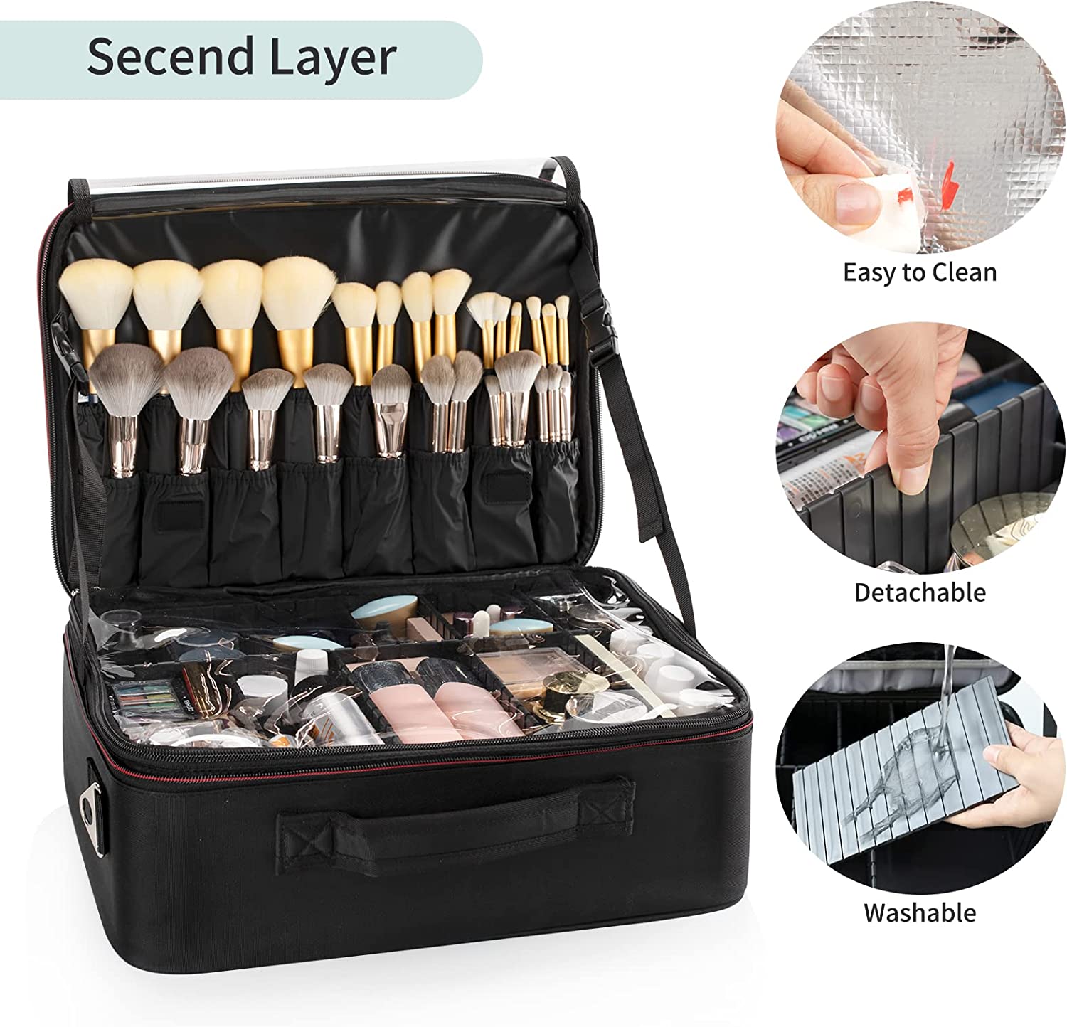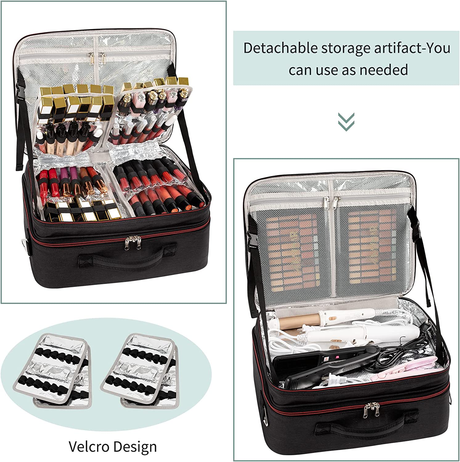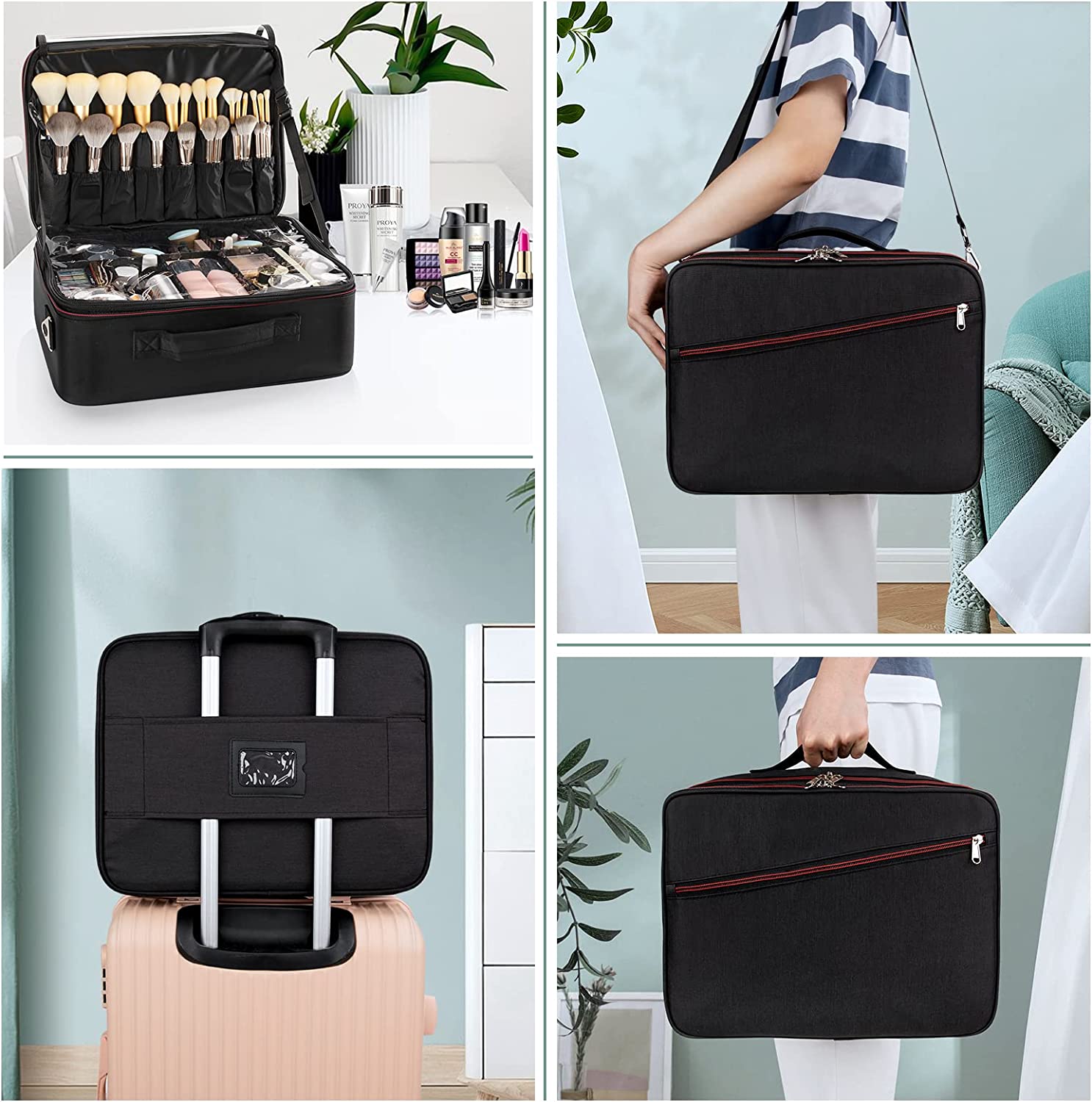 Extra Large Makeup Case, Makeup Bag Organizer Travel Cosmetic Case Portable Artist Storage Bag with Washable Plastic Divider and Heat Insulation Layer For Lipstick Makeup Toiletry Accessories Black