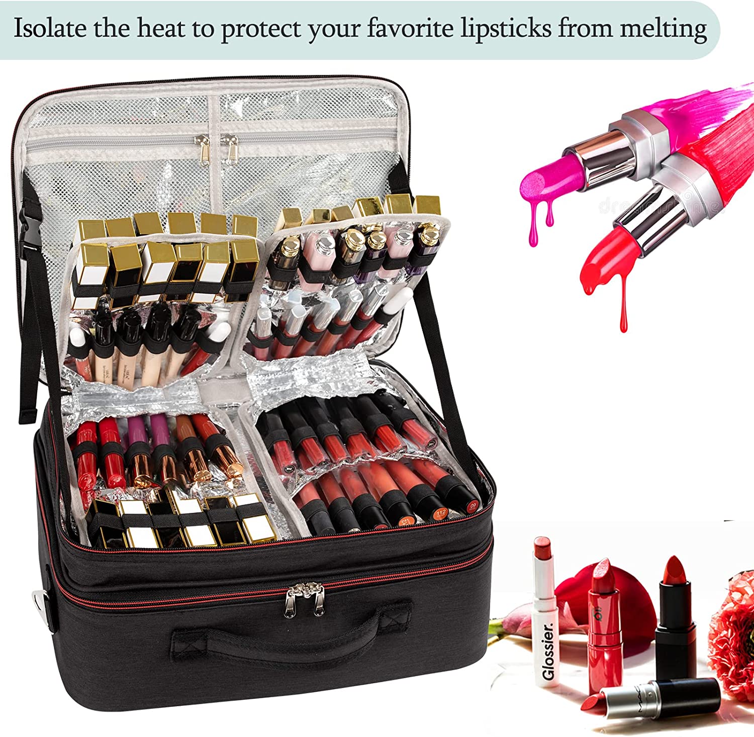 - Isolate High Temperature--The makeup case organizer first layer with tin foil insulation lining No fear of high temperature, can effectively protect your lipstick and other cosmetics from melting