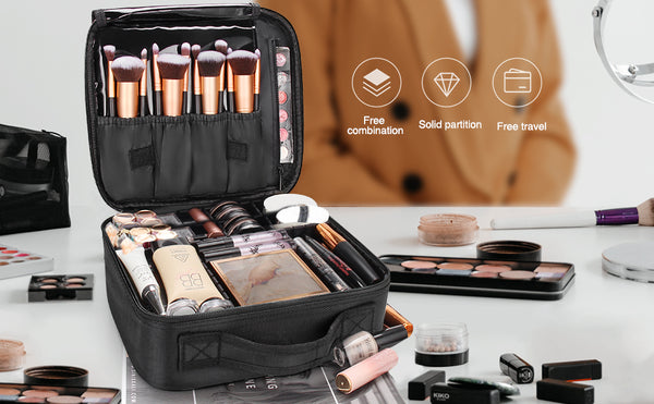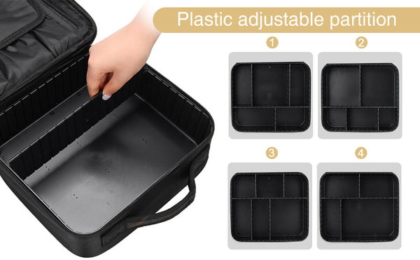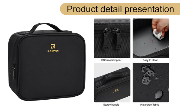 Makeup Bag, Relavel Makeup Organizer Bag Travel Train Case Portable Cosmetic Artist Storage Bag with Adjustable Baffle for Makeup Brush Jewelry (Black)