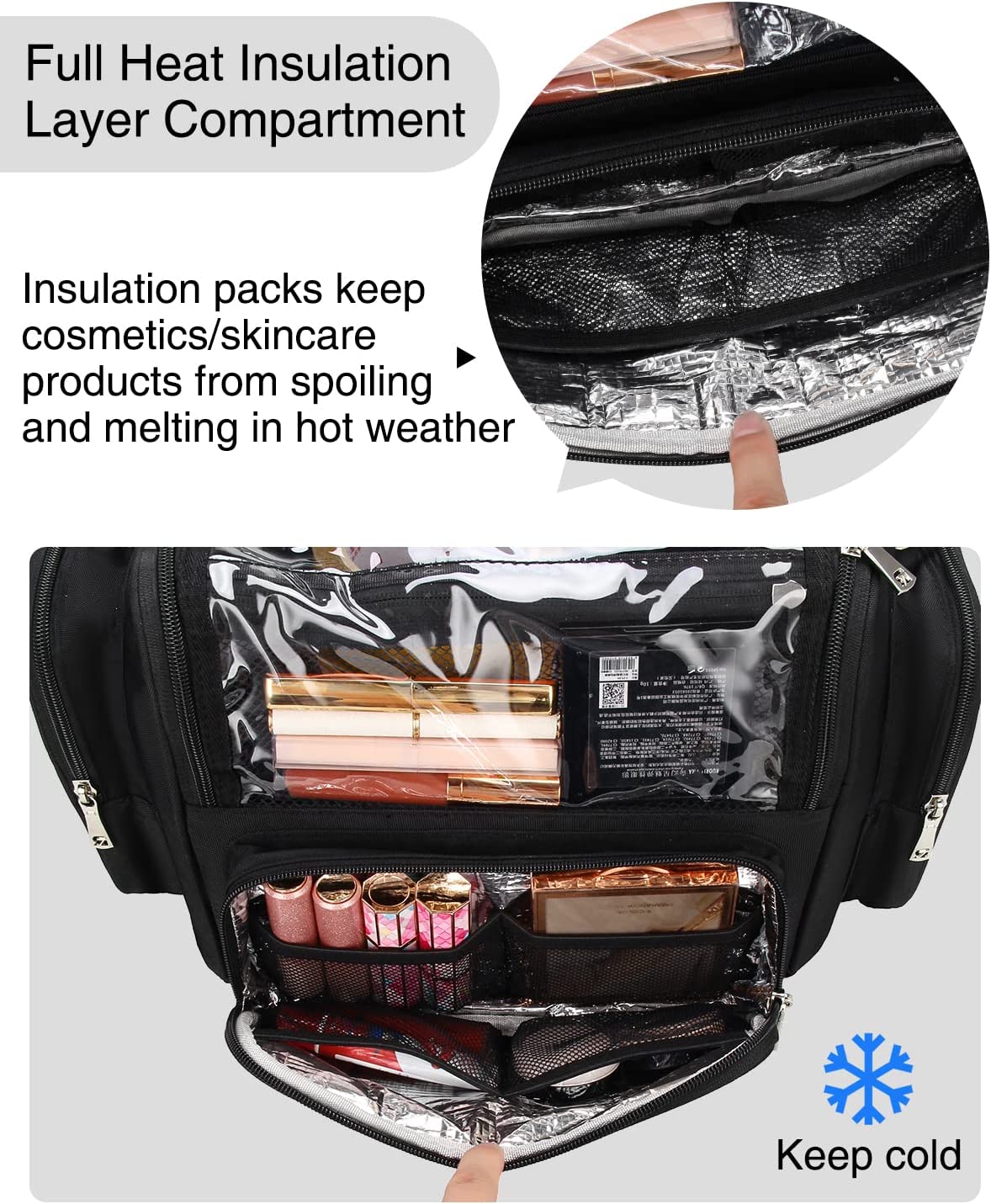 • Large Capacity & Adjustable : This Makeup Bag is extra large. Adjustable dividers and separately pockets can well organize women cosmetics makeup essentials like makeup brush, pencil, lipstick, eye shadow, skincare products, creams, nail art products, disposables, and wipes.