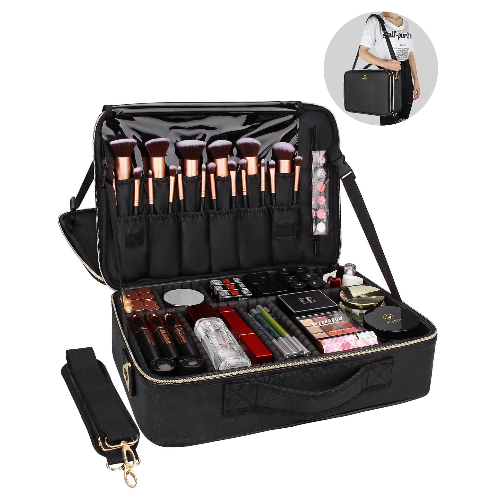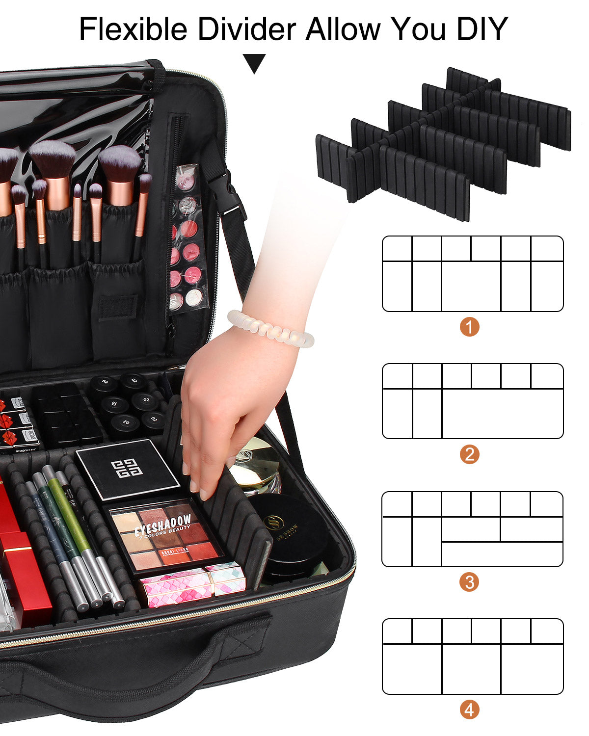 - Triple layers have enough space and slots to store your needs of cosmetics. Two groups of dividers used to store series of makeups or cosmetics.