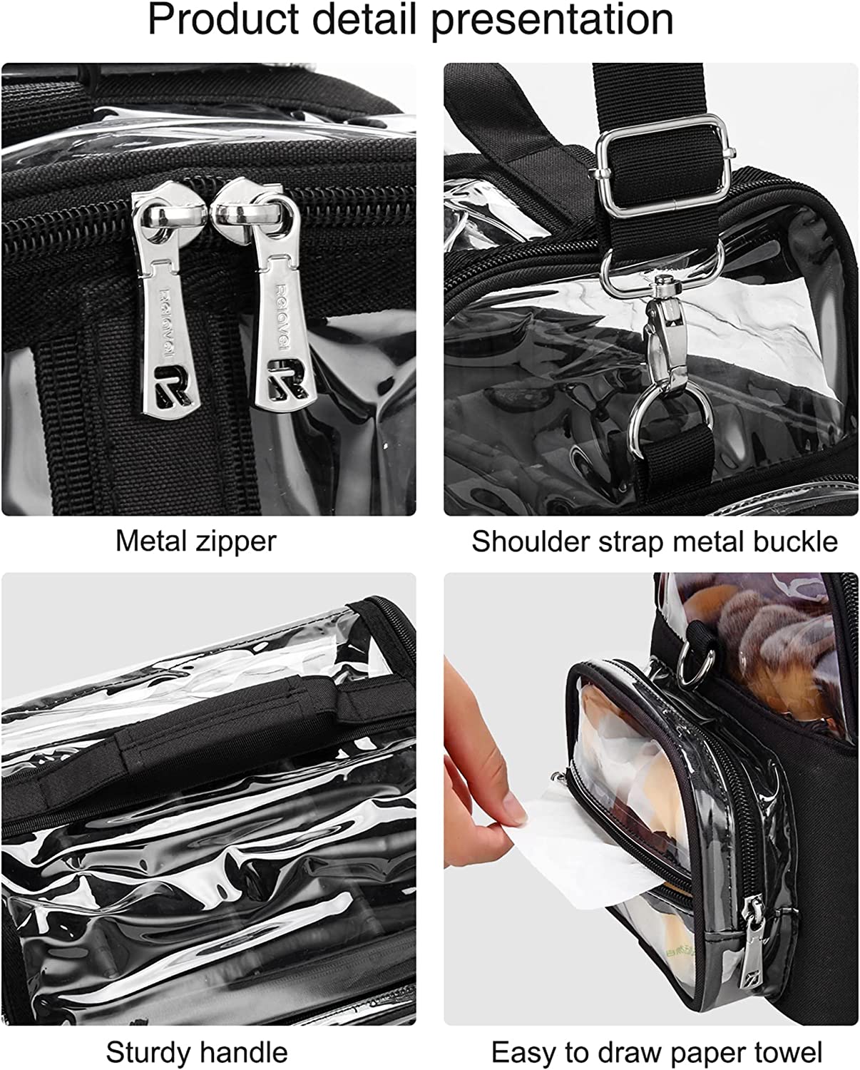 • Professional Makeup Brush Case: This clear makeup brush set bag can store a variety of makeup brushes as needed. The clear cover provides intuitive visuals for quicker brush finding. Multiple pockets allow you to store tools in different sections, improving on the previous construction with a side pocket for tissues and easy access.
