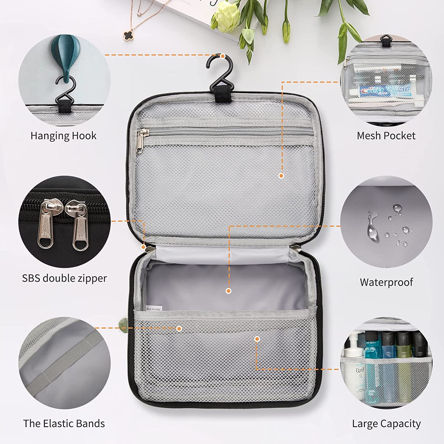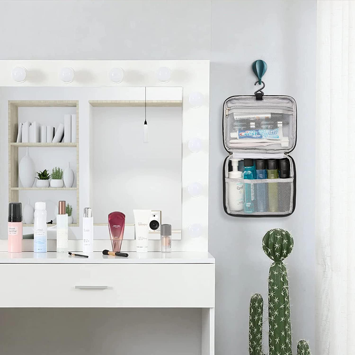 • ☑ Practical Hanging Hook —— The built-in hook makes this hanging toiletry bag easy to be hang on the bathroom door, shower pole, towel rack or on the counte. So that your toiletries and cosmetics are displayed well, convenient to access, and save space. Keep your toiletries organized and release your hands!