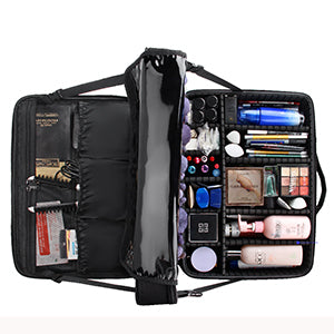 A Great professional makeup case with Pretty Looking, Good Workmanship, High Quality Material, Tidy and Fine Close Stitching, and Luxury 2 Layer, Multiple Slots and Pockets. Everything you need to carry just need an Makeup Case .