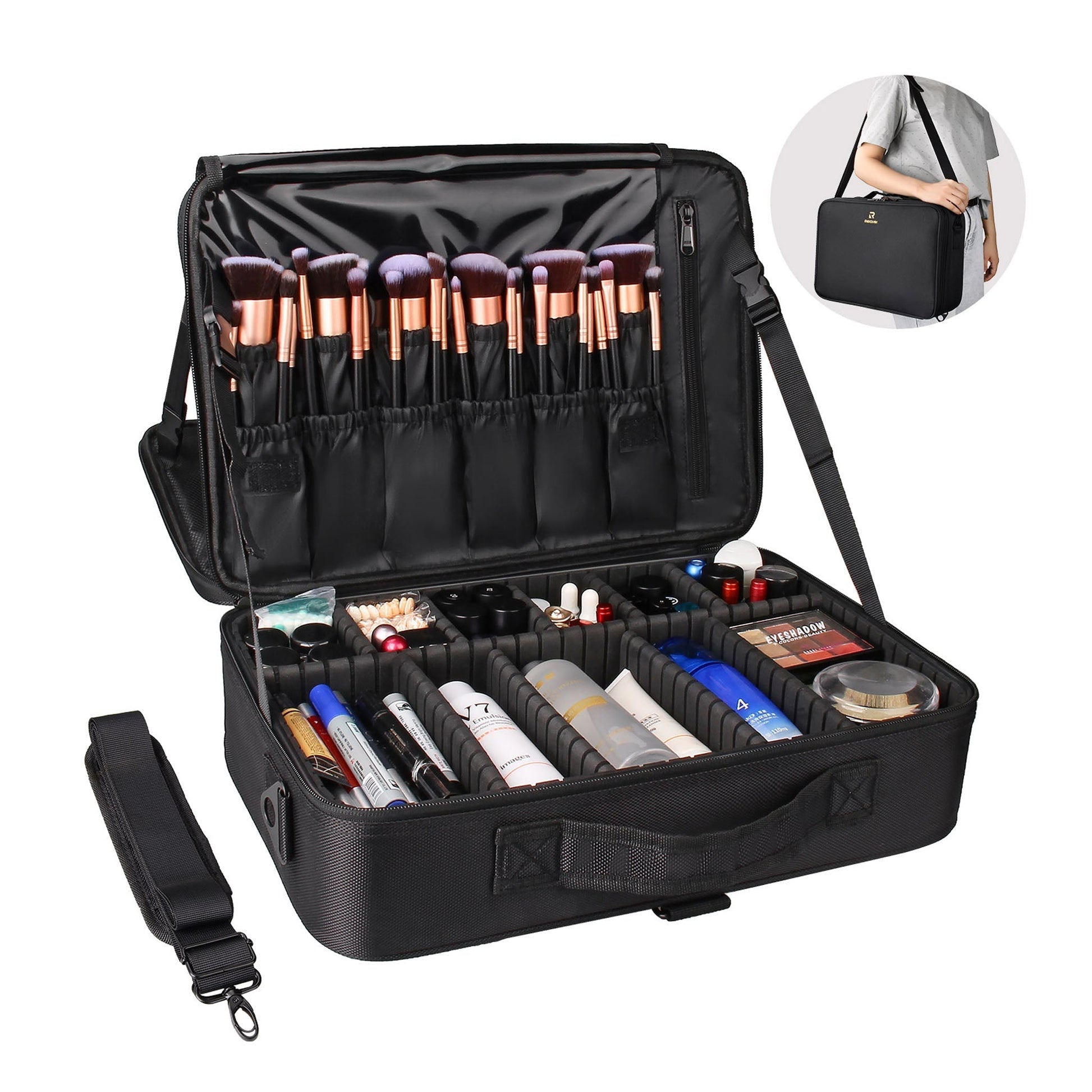 - Package Included: 1*Large Makeup Case, 1*Shoulder Strap, 10*Long and short dividers