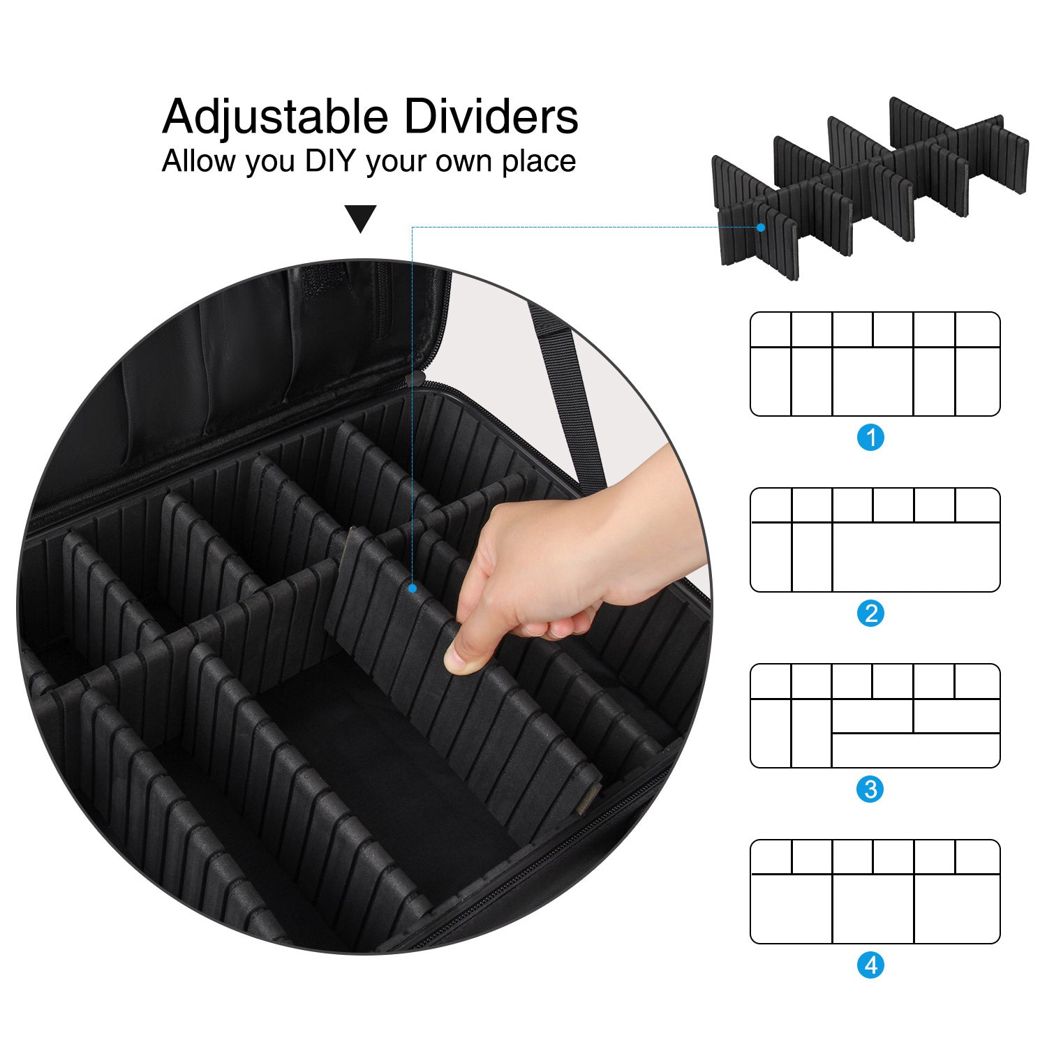- DIY YOUR OWN PLACE: This makeup bag with adjustable dividers, you can move the partitions as needed, give you more space to arrange the stuff.