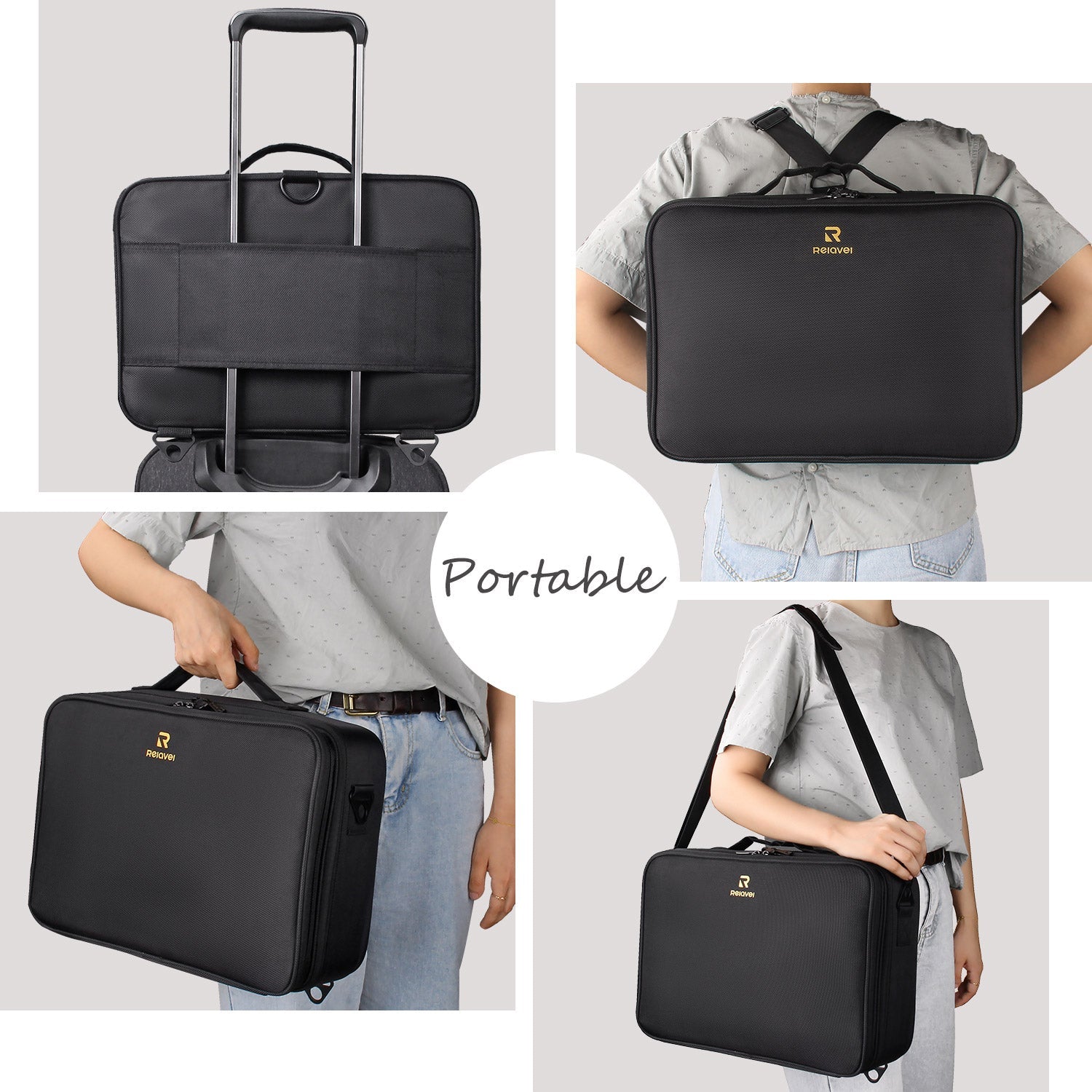 You can set it on the trolley, use it as a shoulder bag or a backpack as well. A great travel makeup bag For on the go.