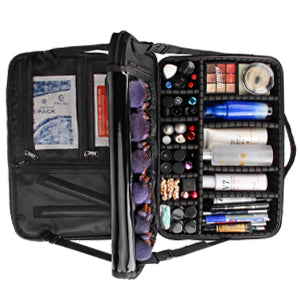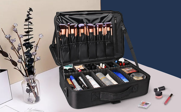 A Great professional makeup case with Pretty Looking, Good Workmanship, High-Quality Material, Tidy And Fine Close Stitching, and Luxury 2 Layer, Multiple Slots, and Pockets. Everything you need to carry just need a Makeup Case.