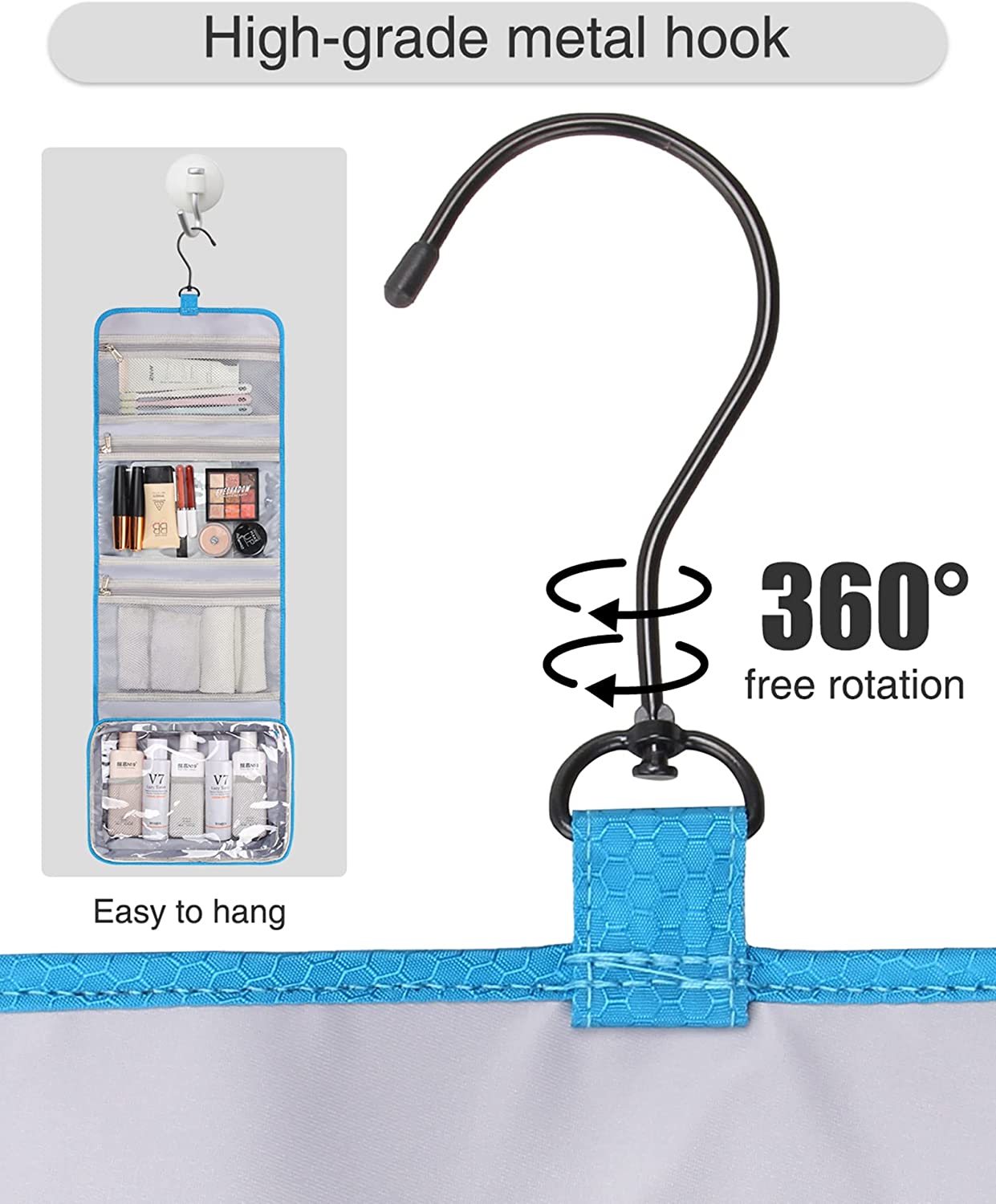 - Convenient and Portable: The attached sturdy metal hanging hook lets you hang this toiletry bag on the bathroom door, shower rod, or towel rack for fast access to your toiletries; it fits bottles upright, and helps eliminate spills, makes a great travel organizer for your travel toiletries.