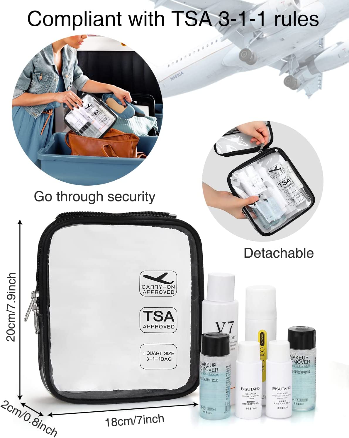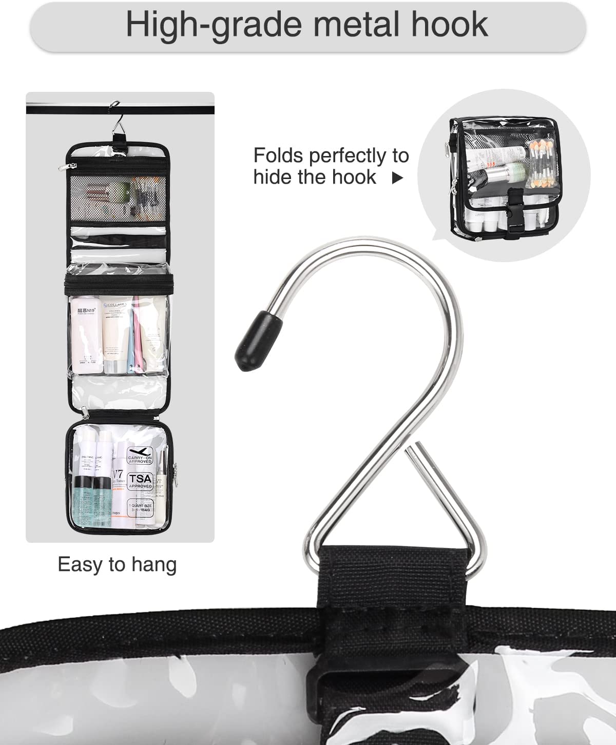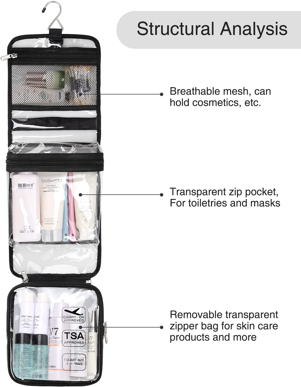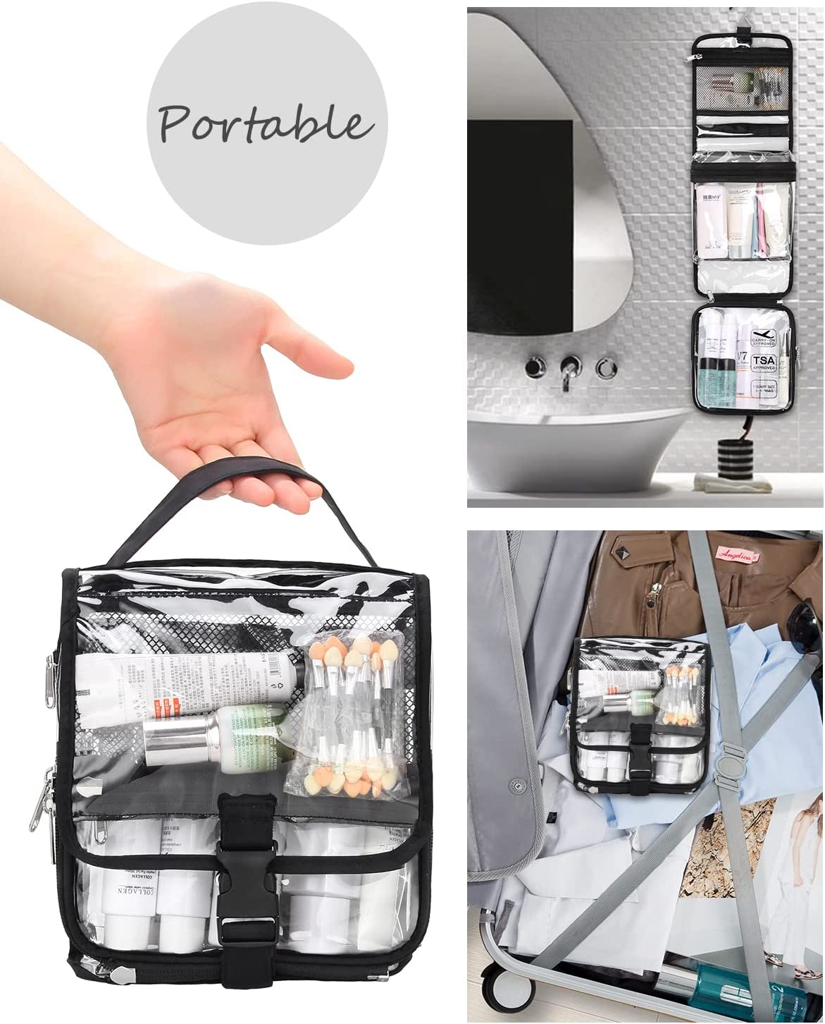 - REMOVABLE TSA APPROVED TOILETRY BAG: Hanging toiletry bag with detachable small clear pouch. You can use this pouch as a separate cosmetic bag or for everyday items like headphones, keys, and more. The Small Clear Bag is a TSA approved toiletry bag, quart size, complies with TSA 3-1-1 airline rules and regulations, making it easy and fast to get through airport security.