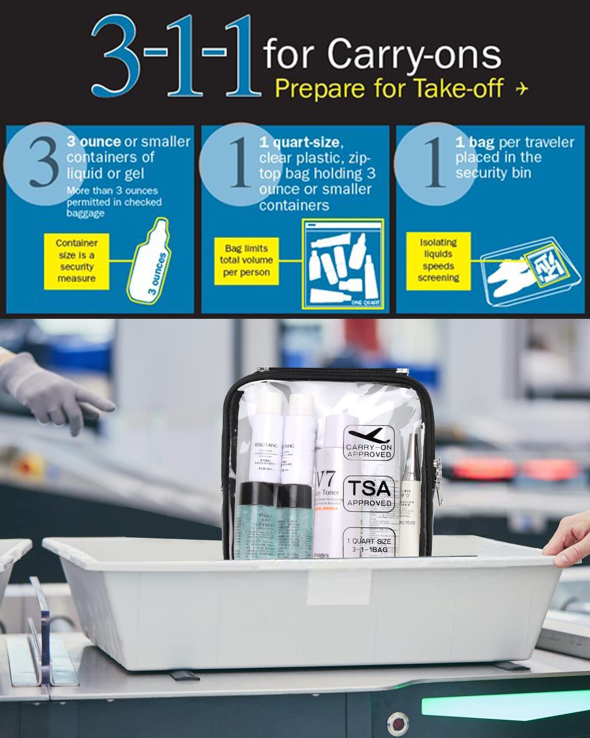 The Small Clear Bag is a TSA approved toiletry bag, quart size, complies with TSA 3-1-1 airline rules and regulations, making it easy and fast to get through airport security.