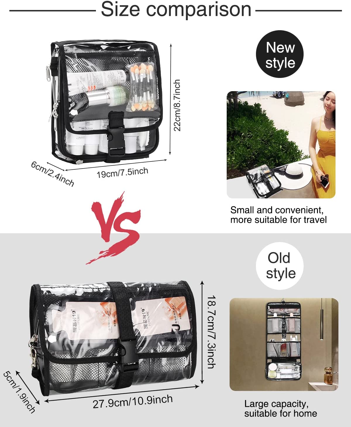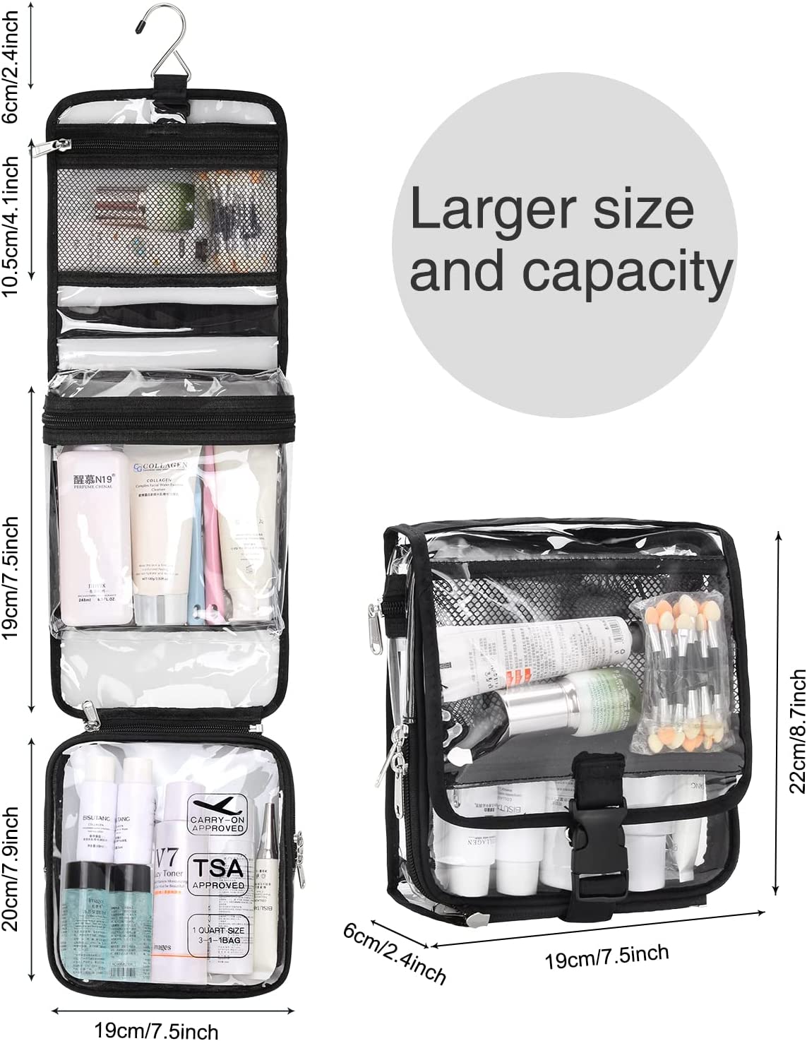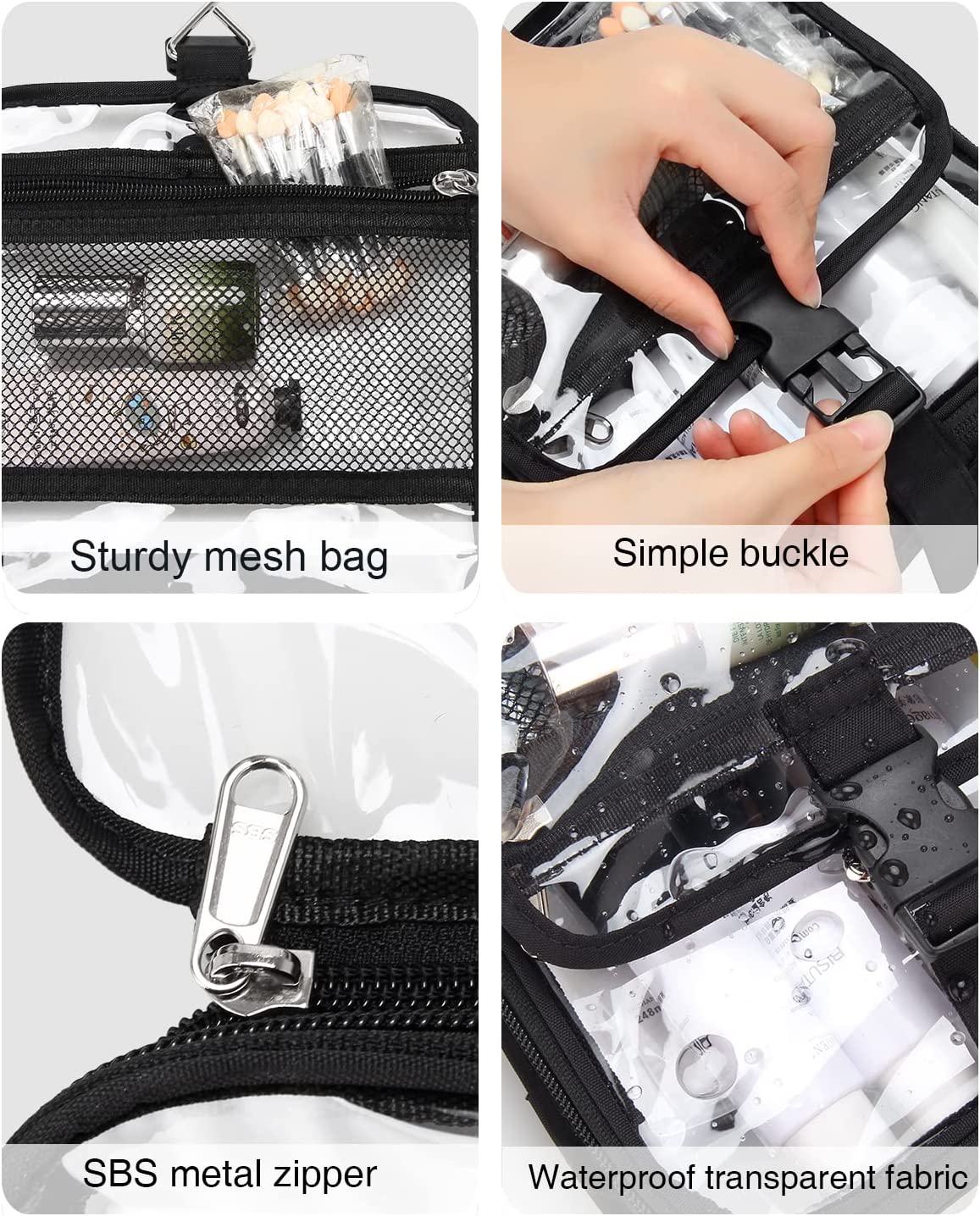 - PREMIUM MATERIAL: The hanging toiletry bag is made of high quality clear PVC material, which is eco-friendly, easy to clean, long service life and reusable. With a waterproof zipper, it keeps your toiletries clean and safe. The entire toiletry bag is made of waterproof material, durable and easy to clean. (does not include vials)